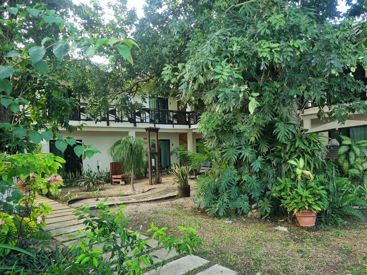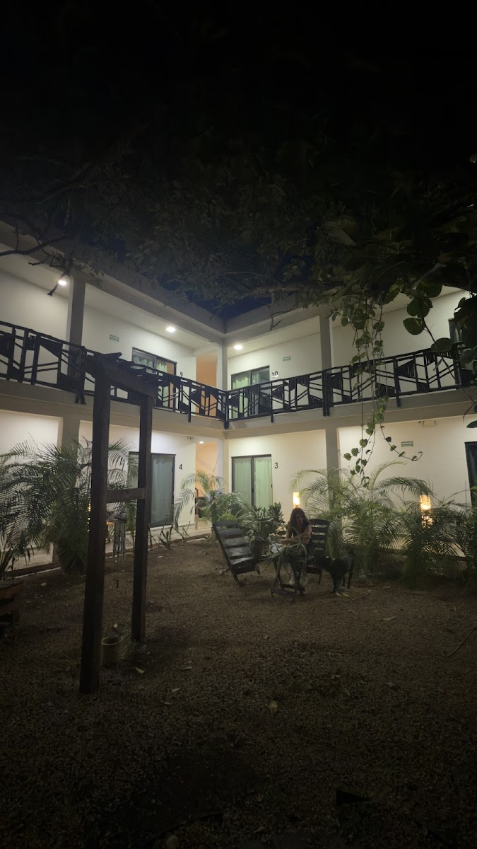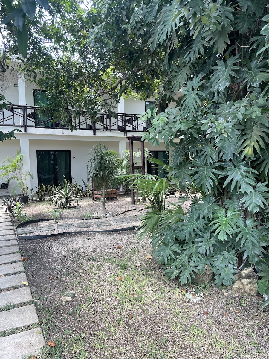 A calm little hotel with a beautiful garden to relax in hammocks underneath the trees. Located in the suburbs of Bacalar, some places to go are a bit further away, but everything is still within walking distance. I would have given 5 stars, if it wasn't for these things: - our room had a narrow window with no blinds, and early in the morning, the sun shined very directly on my bed. It wasn't easy to sleep after 7 am - there was some kind of machine or apparatus somehwere, that constantly turned on and off every minute or so (maybe the water heater?). It was not super loud, so I could still sleep with my ear plugs, but my friends found it a bit annoying. Apart from that: Great place to be. Also, there is a dog (equinoccio) and a cat (solsticio) and they're the cutest!